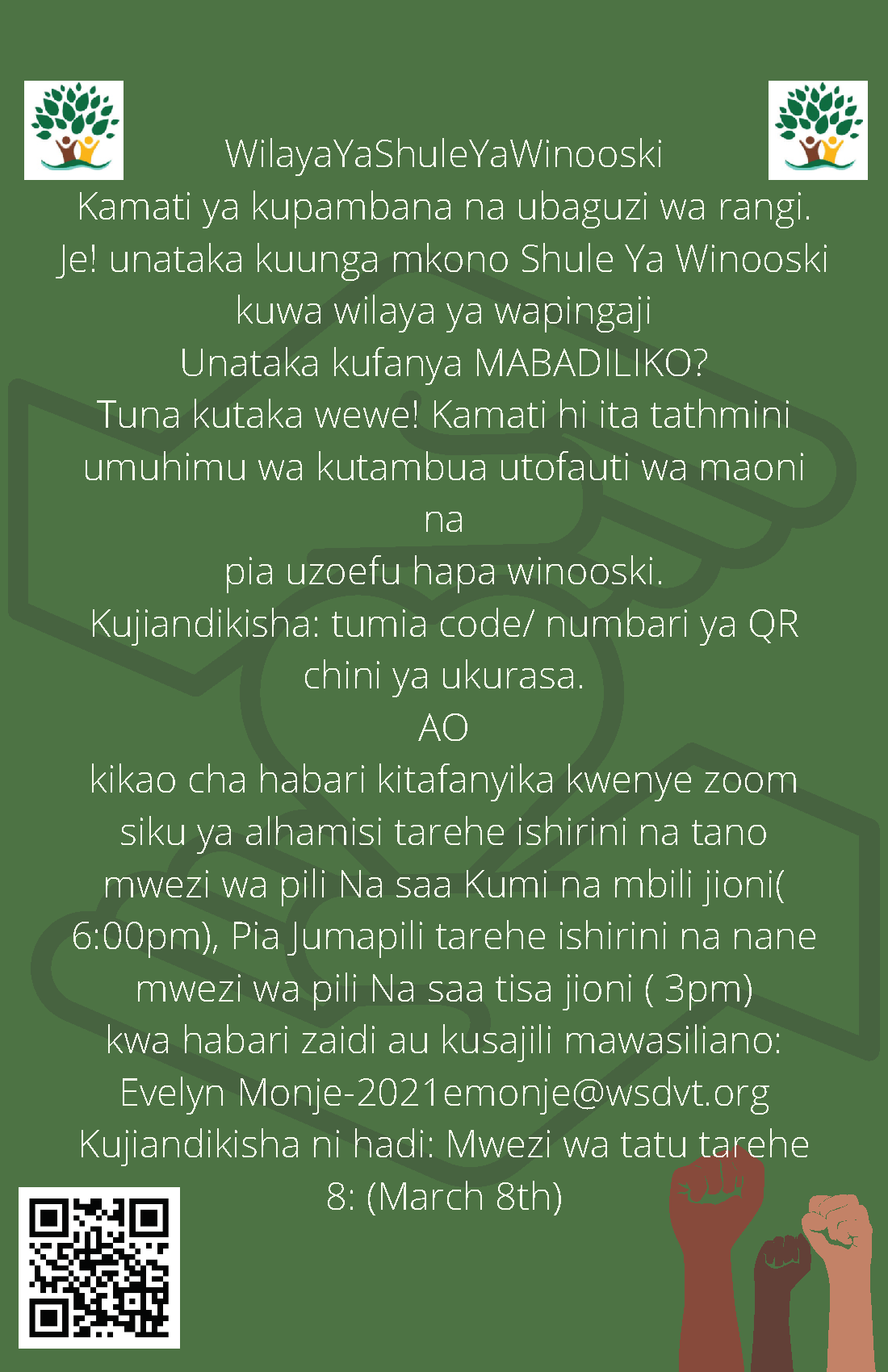 Overarching Goal of the WSD Antiracism Steering Committee: To support WSD in becoming an antiracist school district.